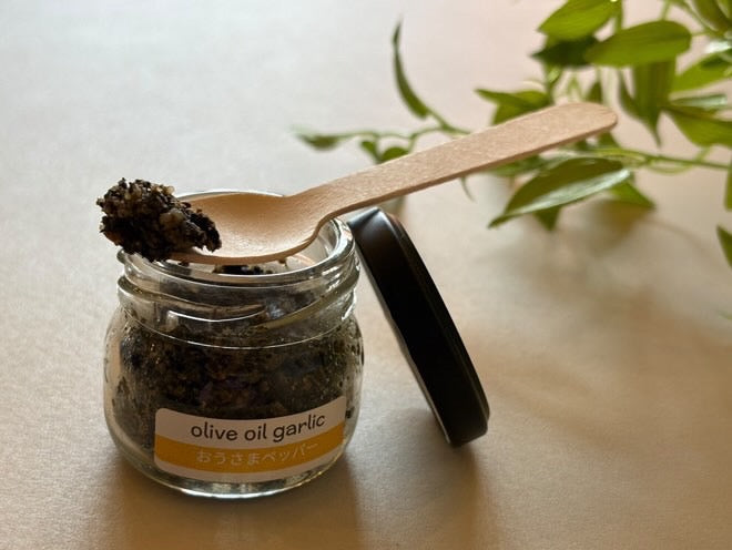 塩と胡椒、オリーブオイルとガーリックのみしか使用していませんが、華やかな胡椒の香りとオリーブオイルの香り、ガーリックが口の中に広まり、試食した人の100%が美味い!と絶賛する商品となりました。